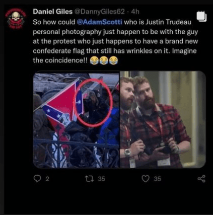 From video footage shot by a protestor, it appeared that this provocateur with the flag was pressured to leave by those in the trucker convoy, as he did not reflect, nor respect, the values of the movement. It’s rumored that, after the photo was taken, these two left together.