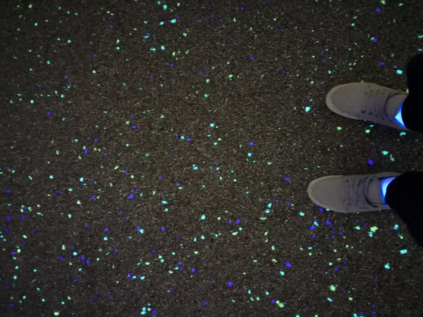 There’s a cafe that offers snacks and drinks you can enjoy as you peer out the window and take in the view. I bought myself some tea and did exactly this. By the time night fell, I decided to go back up to the sky walk before I headed back down. To my surprise, a whole different aspect of this marvel of a building had come to life. When the sun disappears, black lights turn on, revealing something new and unique. The path was illuminated by neon specks as I made my way around the sky walk again.